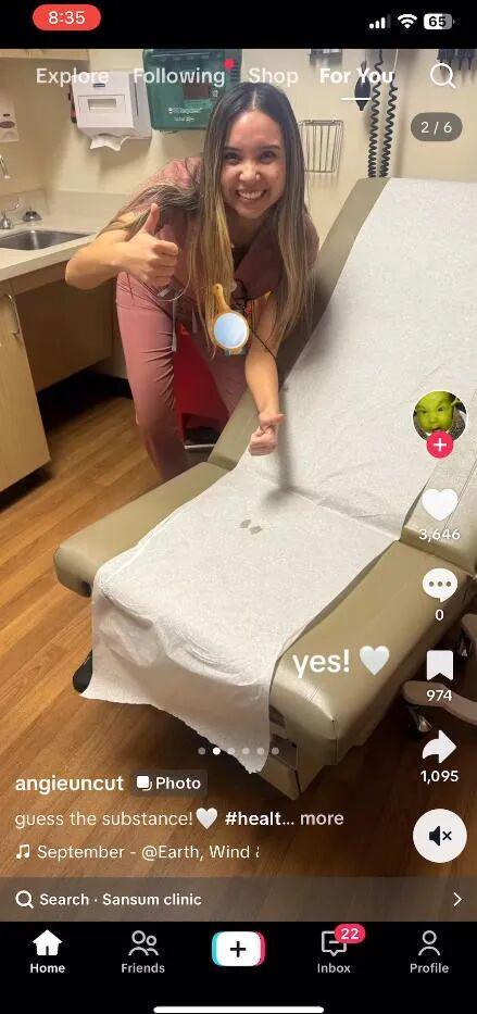 原来,第一张图配文中的“礼物”,指的是病人在检查中不小心失禁,留下的液体。